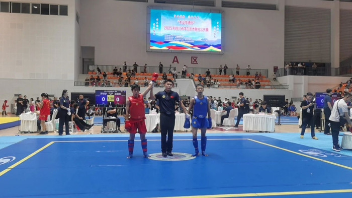 2025年5月31日至6月2日,由四川省武术协会、四川省大学生体育协会、四川省学生体育协会主办,四川旅游学校、成都中医药大学体育健康学院承办的2025年四川省学生武术散打公开赛在成都中医药大学健康体育学院体育馆隆重举行,来自全省各市、州108支代表队1400余人参赛,泰宏拳道馆运动员参加了此次比赛,经过3天激烈地角逐,荣获1金1银3铜、4个第五名。
